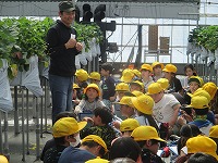 子どもたちはいちごを目の前に、どんどん質問をし、メモしていました。