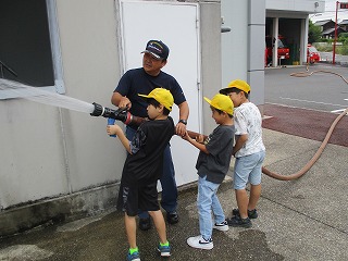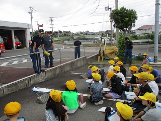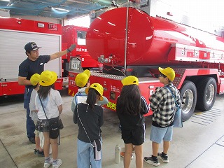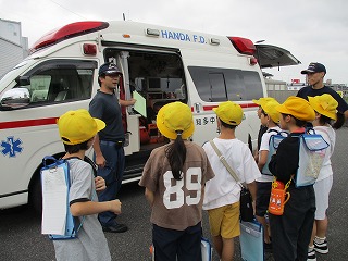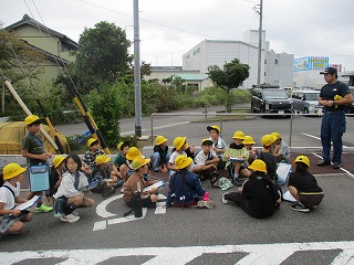 本日3年生が消防署を見学させていただきました。普段の生活の中では見ることのできない消防署の中や設備の様子や体験をさせていただきました。